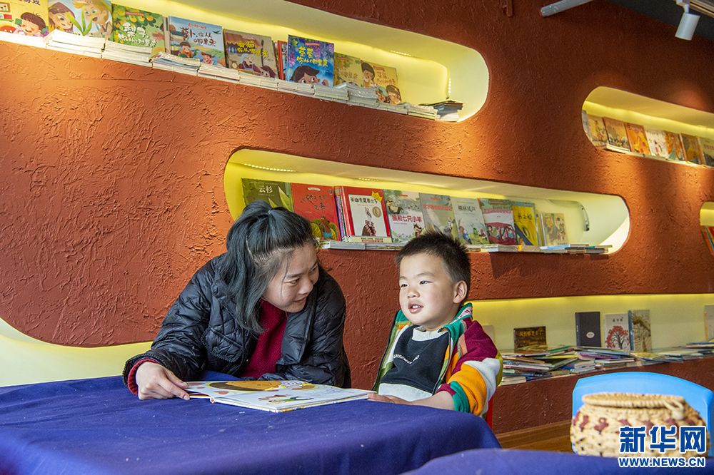 4月23日,一對母子在書(shu) 店裏閱讀繪本。新華網 旦增努布 攝