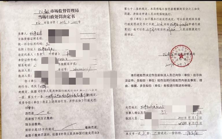 開出的首張“反食品浪費”罰單。圖由拉薩市市場監管局提供