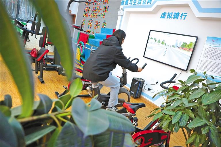 “騎上車子後,腳要用固定裝置固定好,目視前方……”在虛擬騎行區,索央在大屏幕上設定好自行車對應的虛擬場景後,開始向體(ti) 驗群眾(zhong) 示範如何正確進行虛擬騎行。