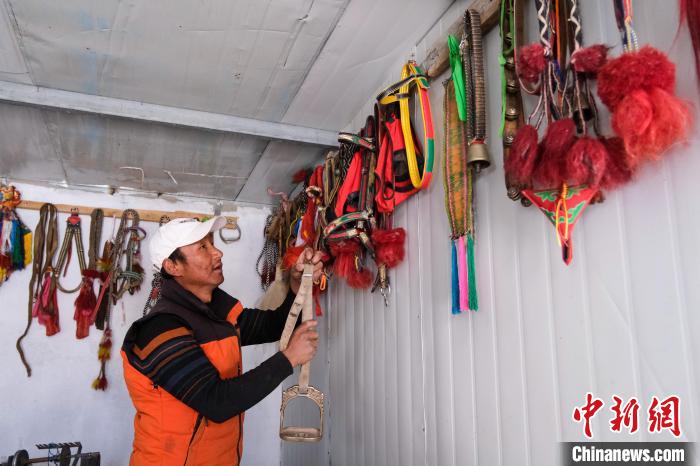 4月26日,強巴整理自己的馬具,他專(zhuan) 門有一間房用於(yu) 堆放馬具。中新社記者 江飛波 攝