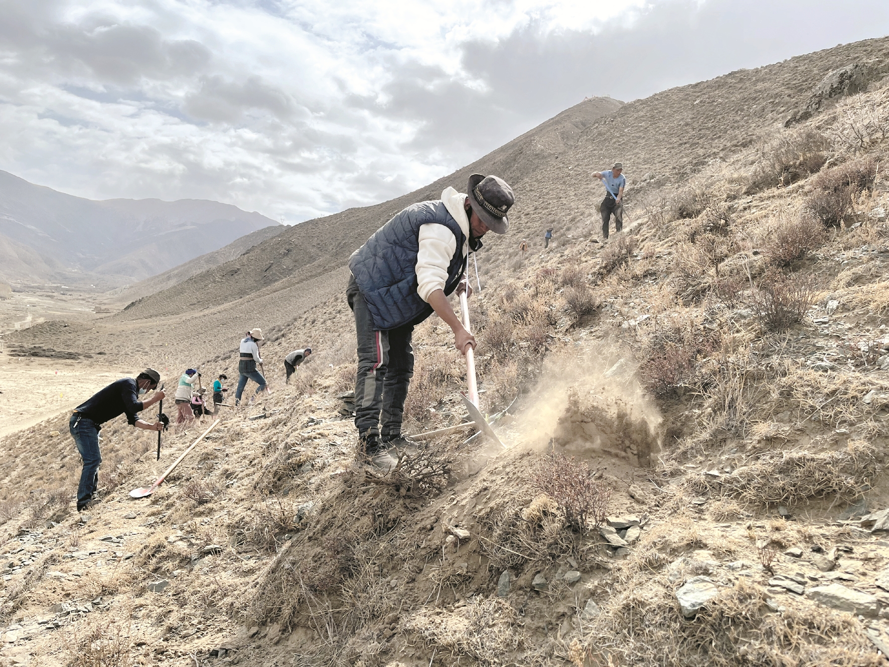 眼下,拉薩河畔,春意盎然,暖意融融。為(wei) 搶抓植樹造林的黃金季節,拉薩南北山綠化工程曲水段正加緊造林,努力把南北山綠化工程作為(wei) 開展國土綠化行動的龍頭工程,科學組織、壓實責任、苦幹實幹,在著力創建國家生態文明高地上當好排頭兵。