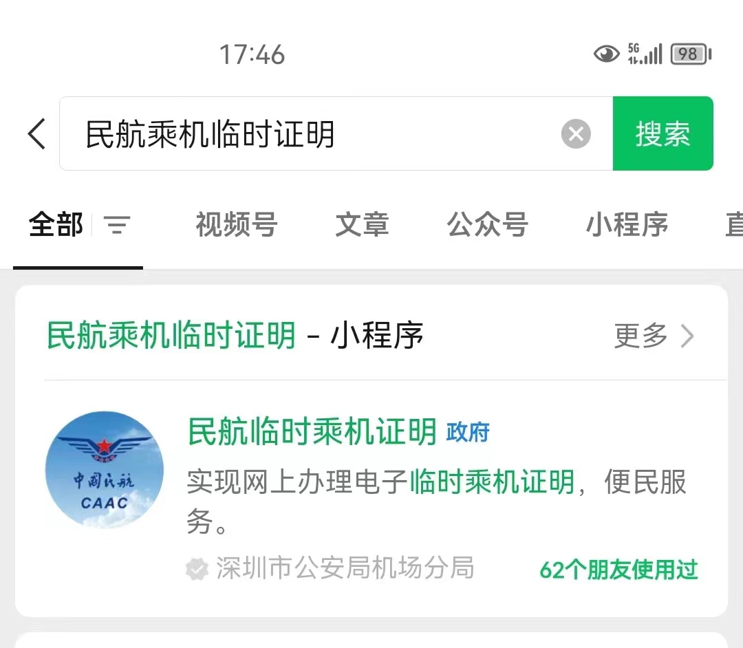 3、請您出示與(yu) 購票時一致的有效證件辦理乘機手續,以免因證件不符耽誤行程。如身份證過期或丟(diu) 失,您可以在微信小程序和支付寶頁麵搜索“民航臨(lin) 時乘機證明”小程序進行辦理。