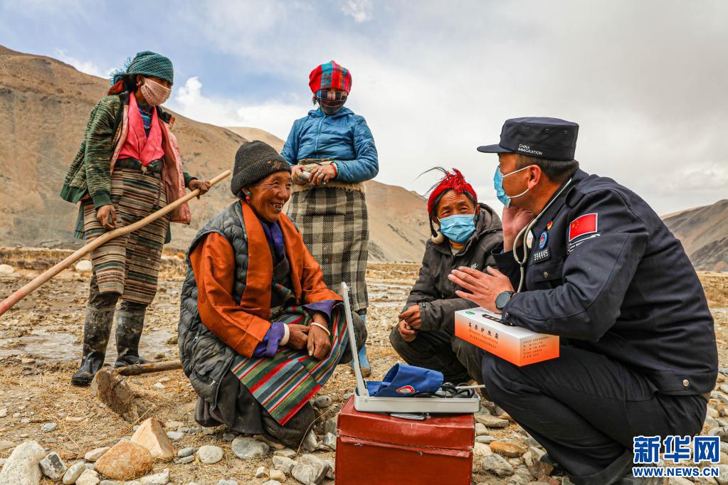 珠峰邊境派出所民警前往轄區為(wei) 正在農(nong) 作的群眾(zhong) 義(yi) 診,並為(wei) 他們(men) 發放藥品。