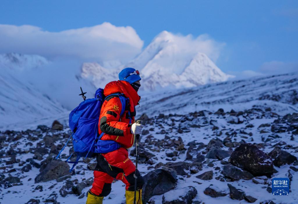 5月3日,登山愛好者正在向海拔6010米的洛堆峰峰頂進發。新華社記者 黃耀漫 攝