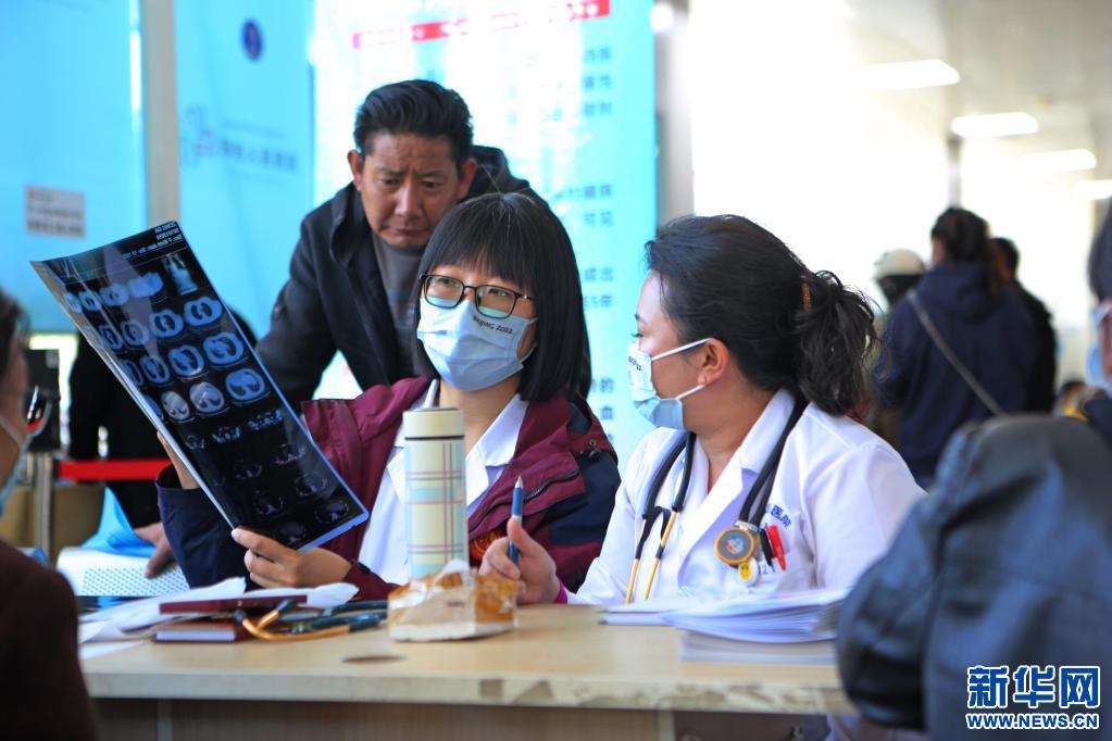 圖為(wei) “京藏攜手,護佑藍唇”義(yi) 診活動現場,楊蘇喬(qiao) 醫生(左一)在為(wei) 患者診治疾病。(5月5日攝)