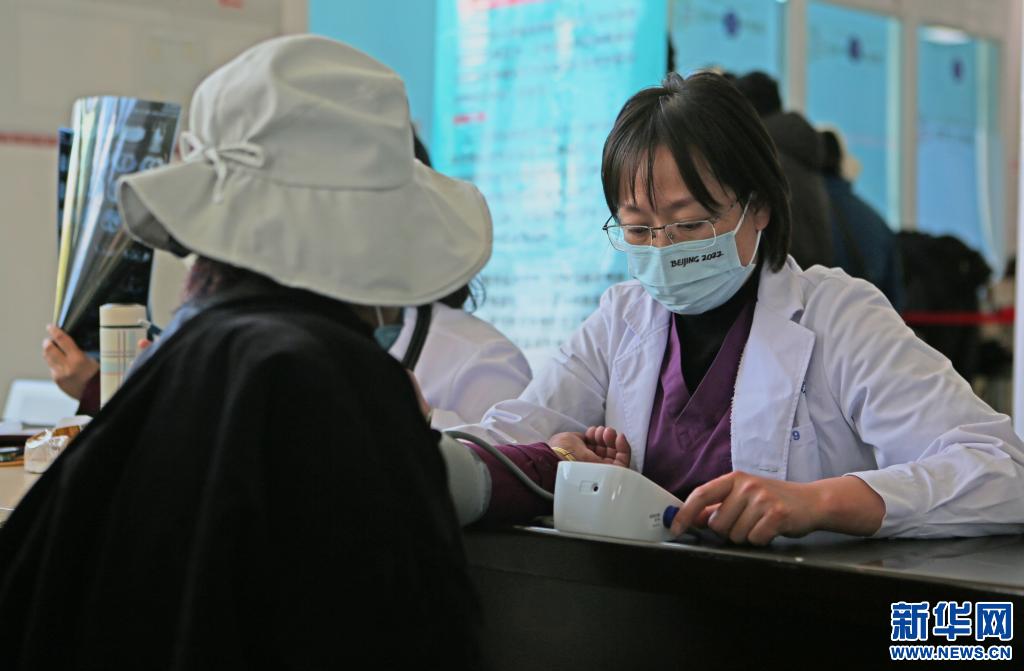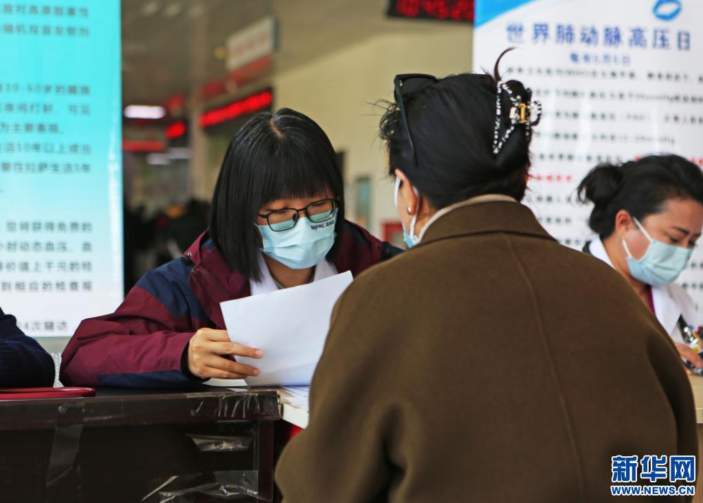 圖為(wei) “京藏攜手,護佑藍唇”義(yi) 診活動現場,醫生在為(wei) 患者測量血壓。(5月5日攝)