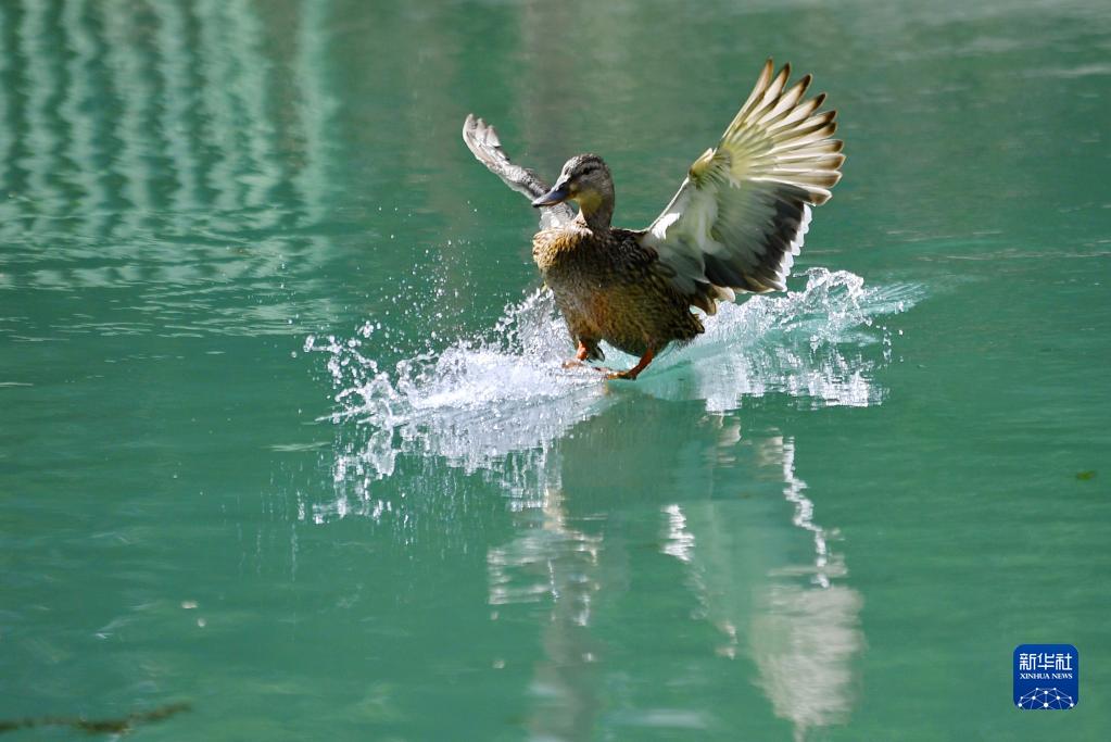 立夏時節,平均海拔3645米的西藏拉薩市拉魯濕地國家級自然保護區裏,草綠水清鳥兒(er) 歡,景色誘人。新華社記者 張汝鋒 攝