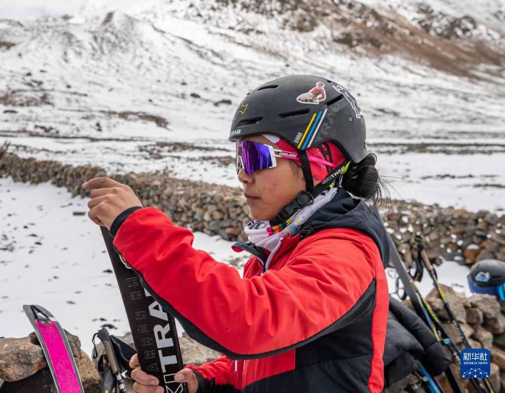 在西藏拉薩市當雄縣羊八井鎮,玉珍拉姆穿戴訓練裝備(5月2日攝)。新華社記者 孫非 攝
