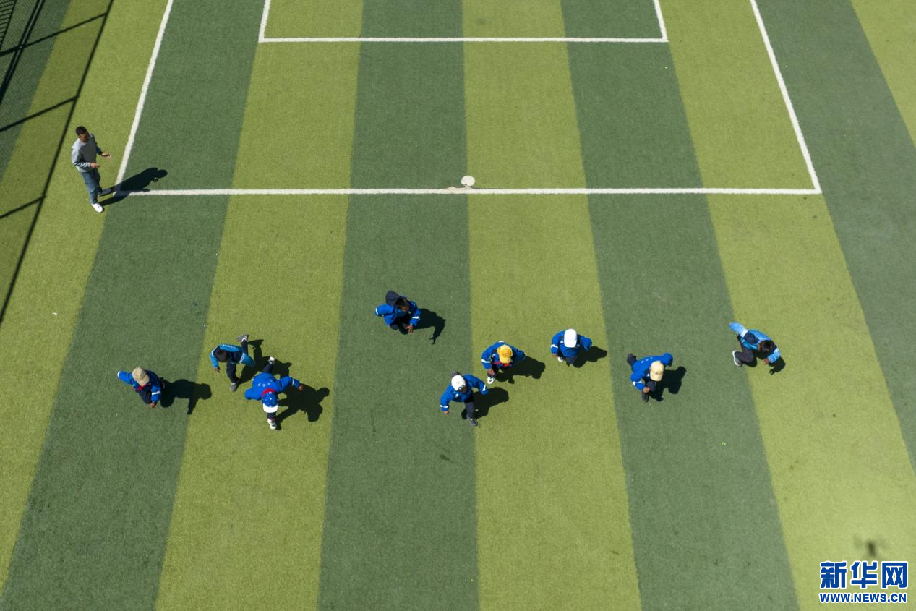 5月15日,西藏定日縣紮西宗鄉(xiang) 完全小學學生在上體(ti) 育課(無人機照片)。新華網 旦增努布 攝