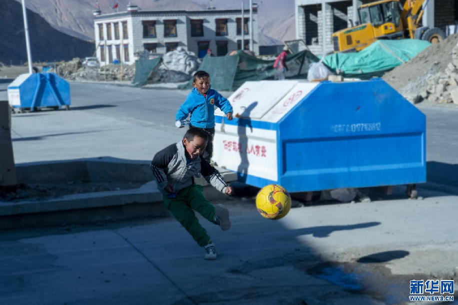 5月13日,在西藏定日縣紮西宗鄉(xiang) 巴鬆村,學生放學後踢球。新華網 旦增努布 攝