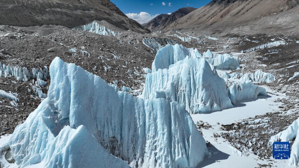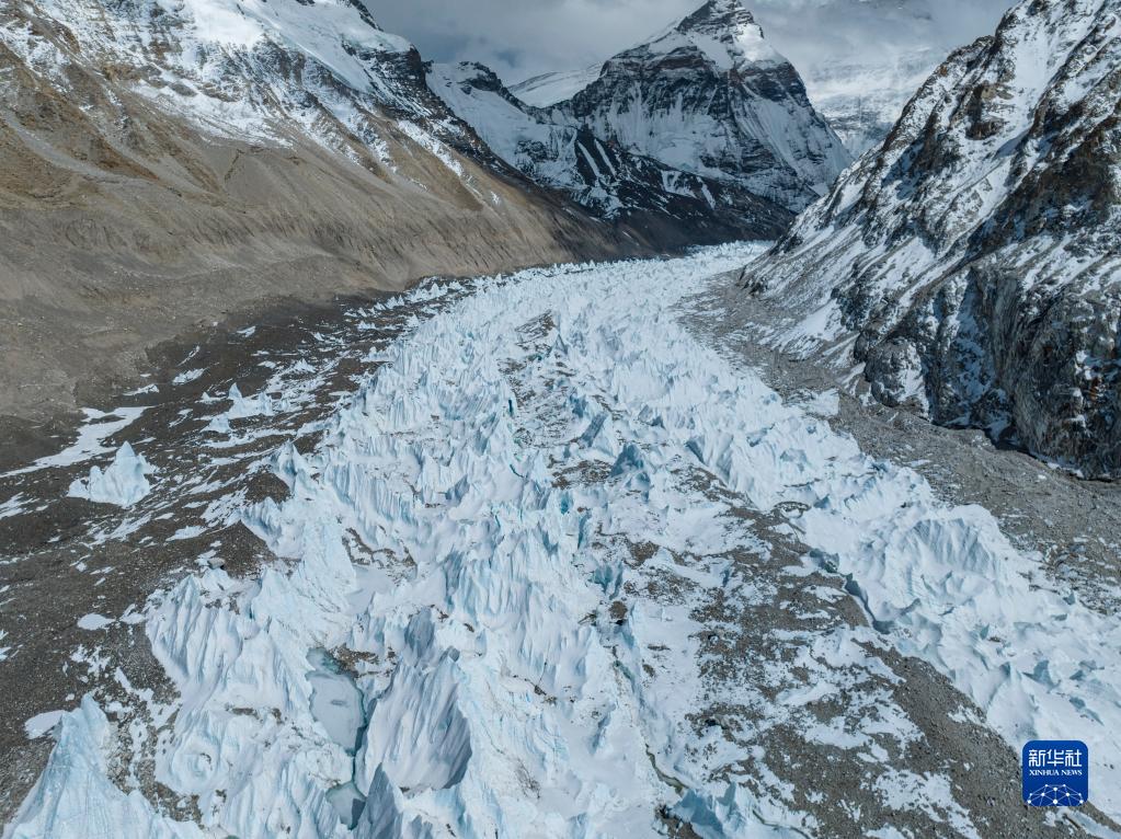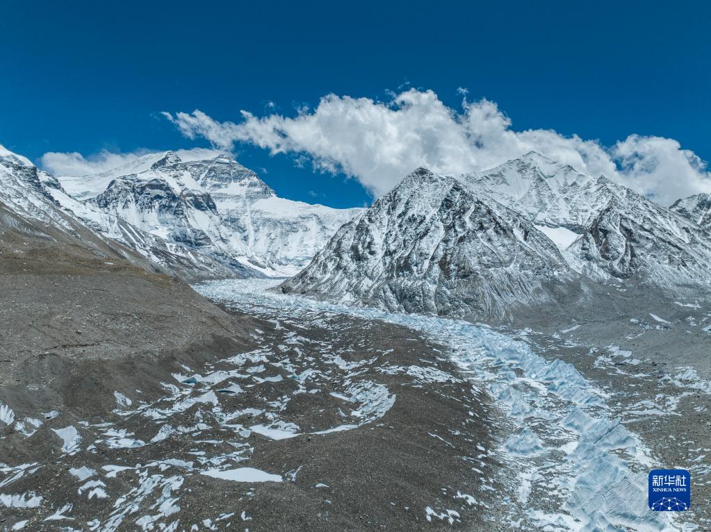 這是珠峰腳下的中絨布冰川(5月15日攝,無人機照片)。新華社記者 孫非 攝