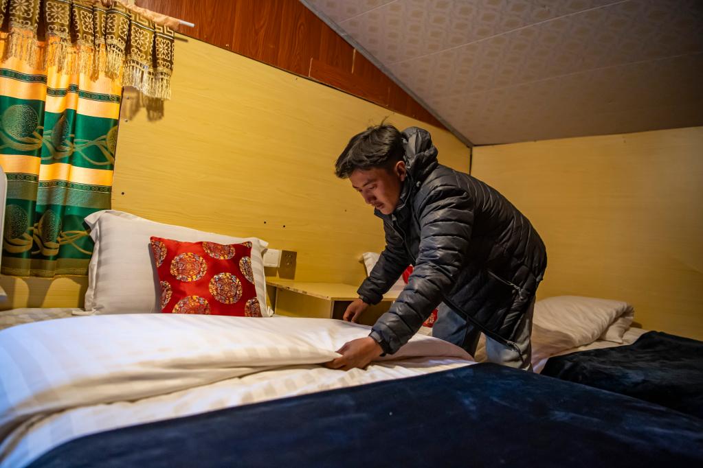 帳篷旅館的收入讓旦增家的生活水平有了顯著提高。旦增不僅(jin) 把弟弟妹妹帶大,供他們(men) 外出上學,家裏還蓋起了嶄新的二層小樓。