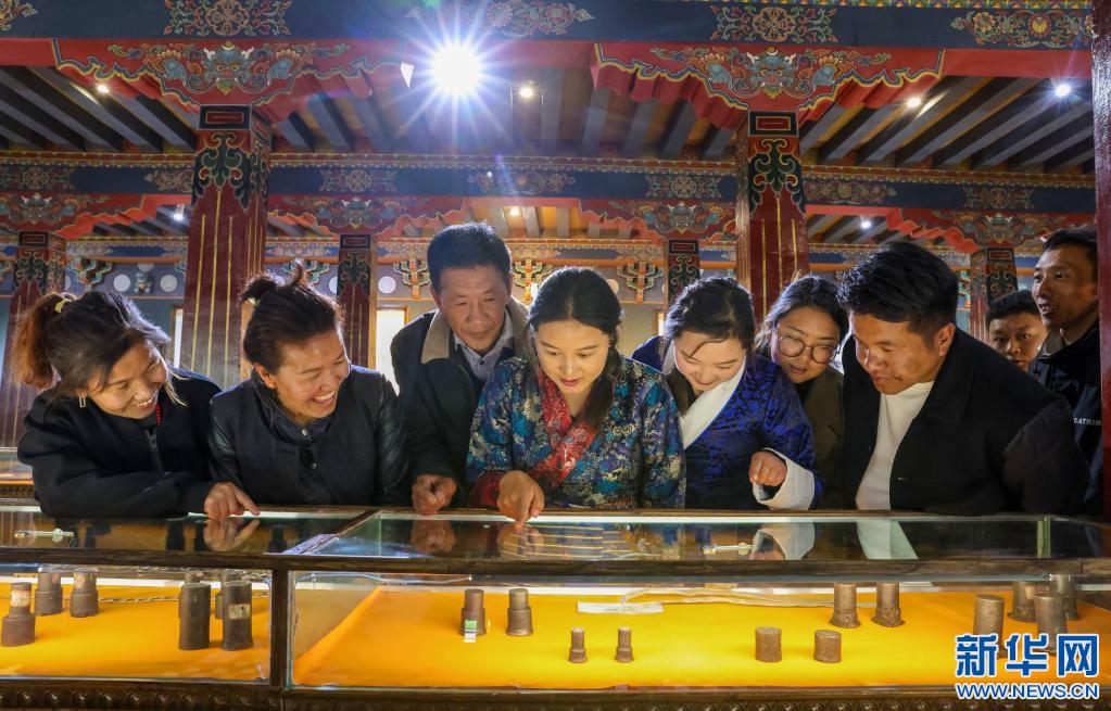 遊客在西藏奪底錢幣博物館觀看鑄幣模具文物。(5月18日攝)新華社記者 薑帆 攝