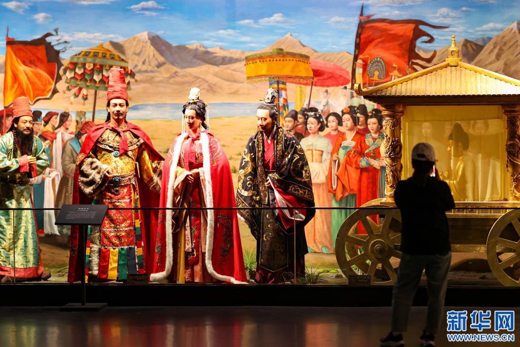 遊客在西藏博物館參觀文成公主進藏場景展示(5月17日攝)。新華社記者 薑帆 攝