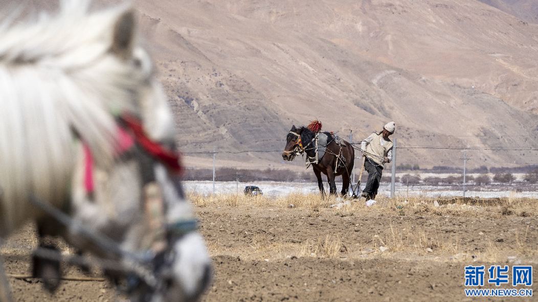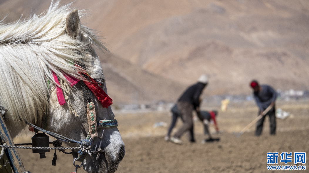 5月20日,西藏定日縣紮西宗鄉(xiang) 日白拉新村的村民在犁地。新華網 旦增努布 攝