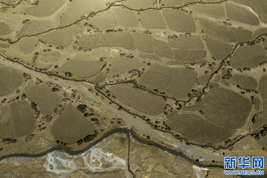5月20日,在西藏定日縣紮西宗鄉(xiang) 境內(nei) 拍攝的農(nong) 田(無人機照片)。 新華網 旦增努布 攝