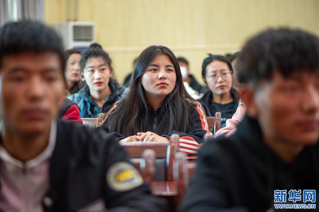 活動現場拉薩市人民檢察院檢察官卓瑪為(wei) 西藏藏醫藥大學生宣講法律知識。(新華社記者 旦增尼瑪曲珠 攝)