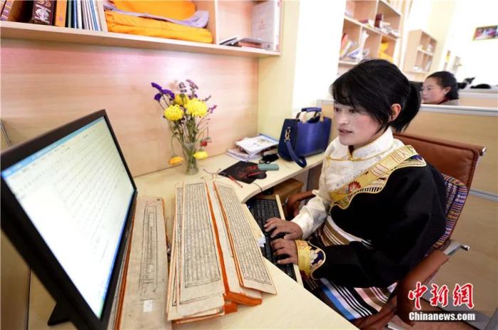 2014年2月,西藏自治區古籍保護中心色昭辦公室的工作人員紮西央宗正在進行藏文古籍錄入。李林 攝