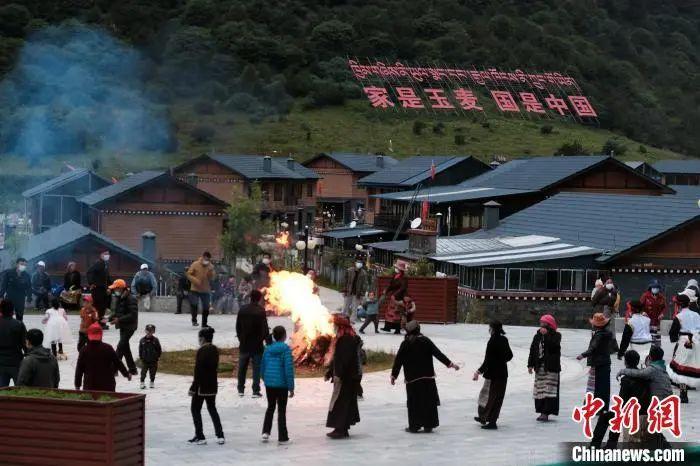 圖為(wei) 2021年8月5日,西藏自治區隆子縣玉麥鄉(xiang) 民眾(zhong) 圍著篝火歡快地跳鍋莊舞。江飛波 攝