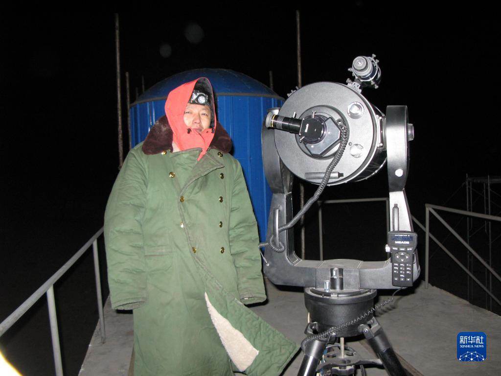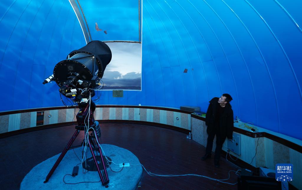 尤顯龍在物瑪站進行夜間望遠鏡實驗(2010年12月攝)。新華社發