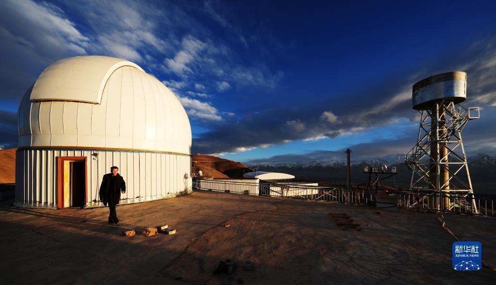 5月24日,日落時分,在阿裏天文台,尤顯龍走出望遠鏡圓頂。新華社記者 費茂華 攝