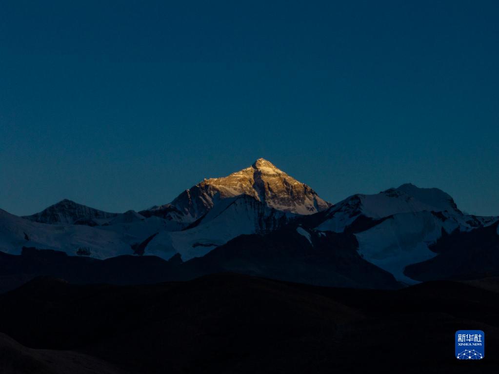 這是5月11日日落時分拍攝的珠穆朗瑪峰(無人機照片)。新華社記者 孫非 攝