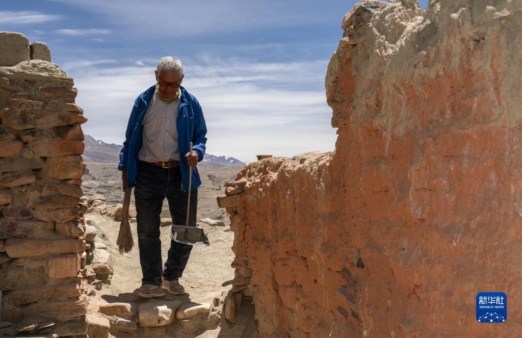 5月26日,仁增旺紮老人準備打掃石窟。新華社記者 費茂華 攝