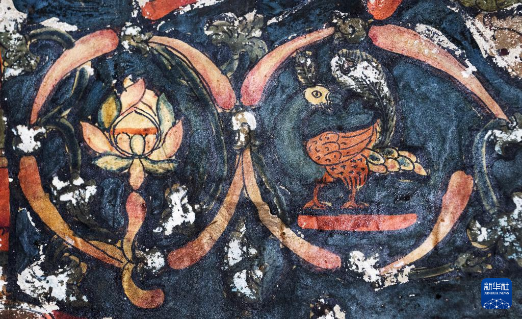這是5月26日拍攝的皮央石窟壁畫中的吉祥八寶。新華社記者 晉美多吉 攝