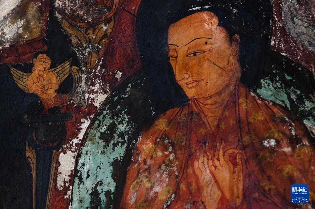這是5月26日拍攝的皮央石窟壁畫中的人物造型。新華社記者 費茂華 攝