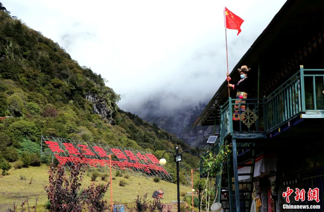 西藏邊陲村落玉麥掛國旗迎國慶。紮西白瑪 攝