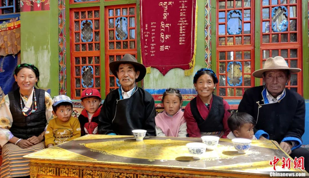 西藏日喀則市謝通門縣農(nong) 牧區脫貧致富家庭的“四世同堂”合影。貢桑拉姆 攝