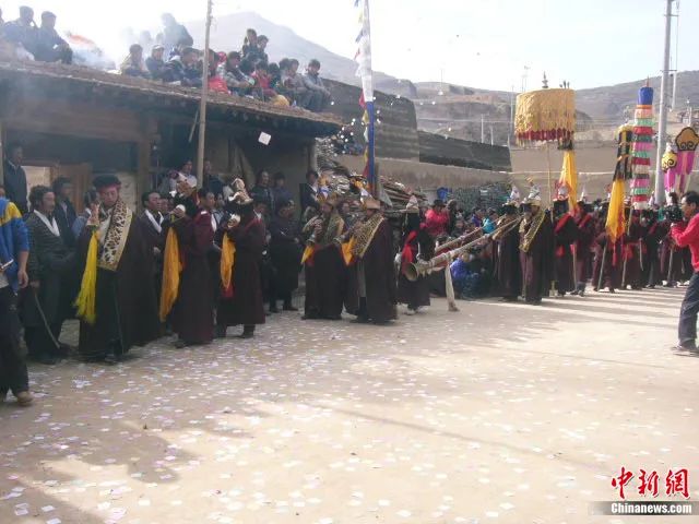 2、舞蹈在村莊廟宇外的一個(ge) 大廣場上進行,舞者主要是僧侶(lv) 。
