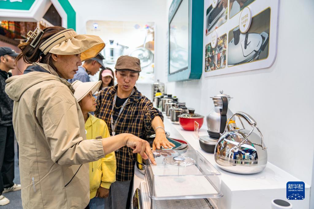 6月17日,工作人員在第五屆藏博會(hui) 現場為(wei) 參觀者介紹產(chan) 品。新華社記者 孫非 攝