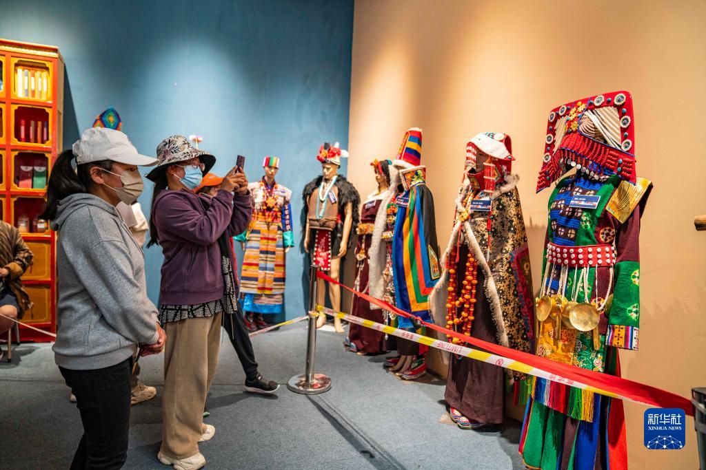 幾名遊客在拍攝西藏各地特色服裝(6月17日攝)。新華社記者 孫非 攝