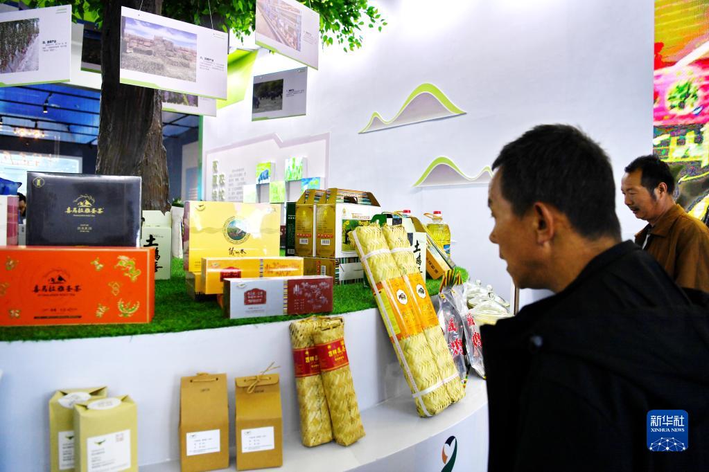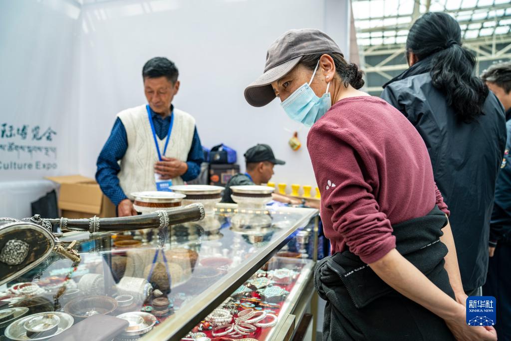 在藏博會(hui) 上,消費者觀看琳琅滿目的西藏特產(chan) (6月17日攝)。新華社記者 張汝鋒 攝