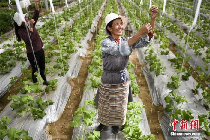 西藏山南紮囊縣綠之源智慧農(nong) 業(ye) 項目的工人正在勞作。楊華峰 攝