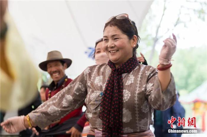 拉薩民眾(zhong) 在布達拉宮宗角祿康公園跳鍋莊舞。雪域高原“全民健身”模式已開啟。何蓬磊 攝
