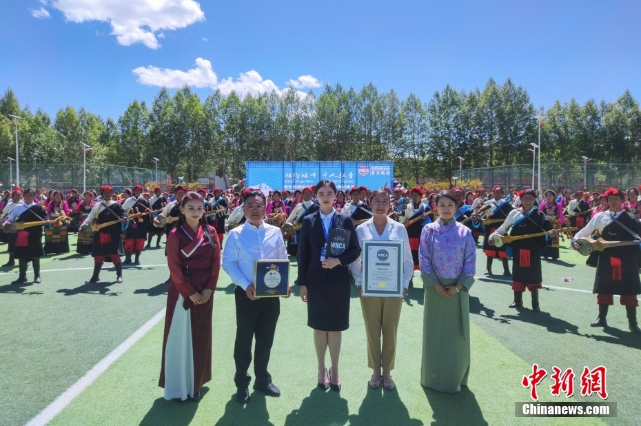 6月25日,“相約珠峰·千人弦音”西藏日喀則大型非遺歌舞展演在日喀則上海體(ti) 育場舉(ju) 行。經世界紀錄認證(WRCA)官方審核,該活動成功創造“最大規模的日喀則非遺民俗舞蹈表演”世界紀錄。