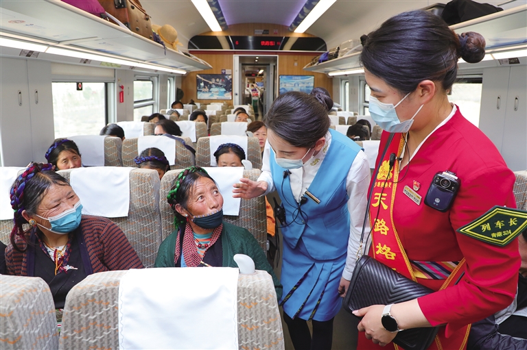 2022年初,青藏集團有限公司在管內(nei) 各站、車開展“天路格桑花”品牌創建以來,拉林鐵路各車站、各次列車上都能看到“天路格桑花”服務隊員,他們(men) 用真誠、熱情、熱心為(wei) 每一位旅客提供溫馨細致的服務。“6月初,我帶著孩子來西藏旅遊,6月20日前往林芝,遊玩了三天,由於(yu) 家裏有事,不得不趕回去,就買(mai) 了今天中午回拉薩的火車票,剛開車不久我姑娘就發燒,肚子痛。列車員看見孩子難受就詢問情況,並找來列車長周晶,通過廣播為(wei) 我們(men) 找醫生,還好沒啥大事,就是腸胃感冒,我也就放心了。周晶車長也一直在旁邊幫我照顧孩子,拿濕毛巾擦臉,蓋毛毯,送來熱水,太細心了,讓我很感動。她們(men) 工作認真負責,服務周到,我一路上都親(qin) 身感受到了高原動車的熱情。”在24日林芝到拉薩的C926次列車上,來自四川的高雅女士拉著記者激動地說。