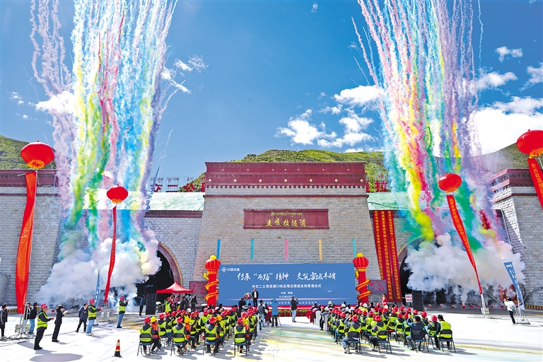 圖為(wei) 西藏S5線圭嘎拉隧道全線貫通儀(yi) 式現場。貢曲羅傑 央金 攝
