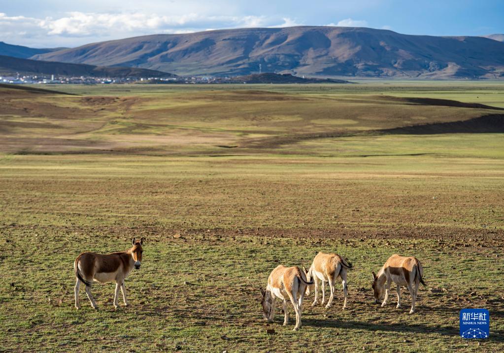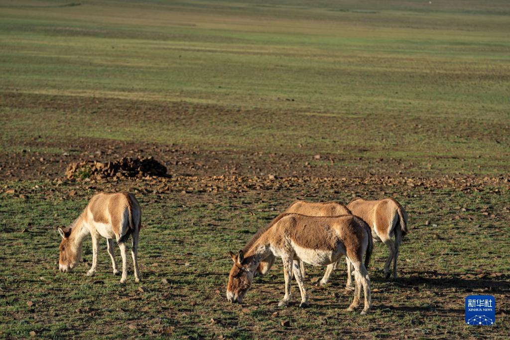 在哲古草原上覓食的藏野驢(6月28日攝)。新華社記者 孫非 攝