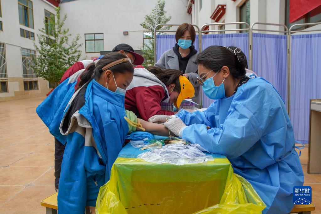 7月4日,那曲市色尼區適齡兒(er) 童、青少年排隊等待做心髒聽診。新華社記者 邵澤東(dong) 攝