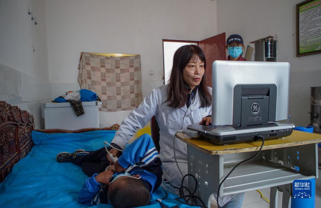 7月4日,“心佑工程”項目團隊醫生給疑似患兒(er) 做心髒彩超。新華社記者 邵澤東(dong) 攝