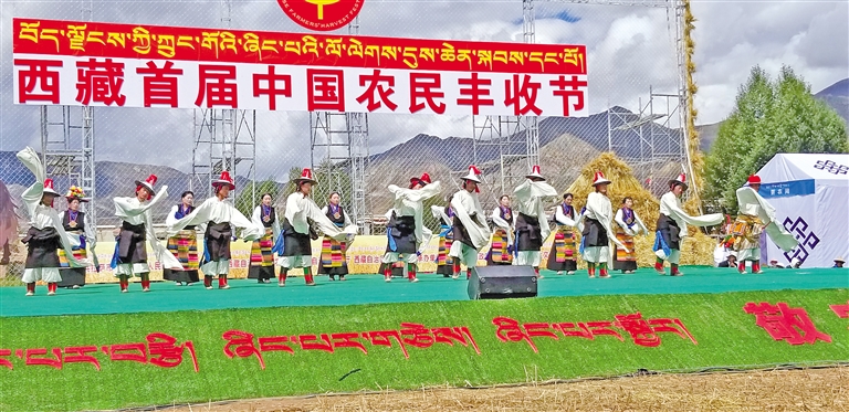 “熱振曲卓”文藝演出隊參加西藏首屆農(nong) 民豐(feng) 收節。