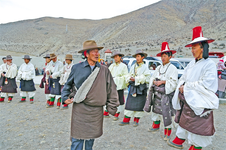 “小時候,我看見大人們(men) 在草地上跳‘熱振曲卓’,舞姿太漂亮了。我不想我的後代隻能在書(shu) 本裏看到這個(ge) 舞蹈,希望把它傳(chuan) 承下去。”56歲的宗巴為(wei) 了恢複“熱振曲卓”表演,於(yu) 2015年成立了林周“熱振曲卓”傳(chuan) 播有限公司,致力於(yu) 該舞蹈的傳(chuan) 承保護。