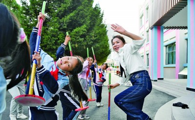 山南市第三小學的援藏教師甘夭娥帶領學生練習(xi) 藏族傳(chuan) 統舞蹈“打阿嘎”。作為(wei) 教育大省,湖南通過實施“山南湖南學校聯盟”工程,采取“一所學校包一個(ge) 學科”的形式,把優(you) 質教育資源下沉到縣區和鄉(xiang) 村學校。攝影:辜鵬博(湖南日報攝影記者)
