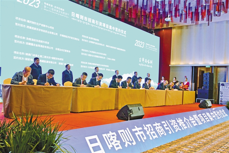 6月19日,第十八屆珠峰文化旅遊節招商引資推介會(hui) 暨項目集中簽約儀(yi) 式上,共簽約項目58個(ge) ,總投資約204億(yi) 元。