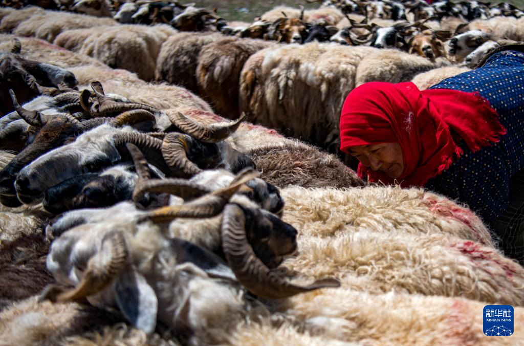 多爾格村的一名村民在擠羊奶(7月11日攝)。新華社記者 薑帆 攝