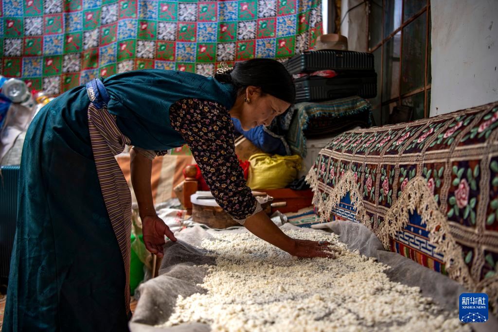 多爾格村村民達娃在家裏製作奶渣(7月11日攝)。新華社記者 薑帆 攝