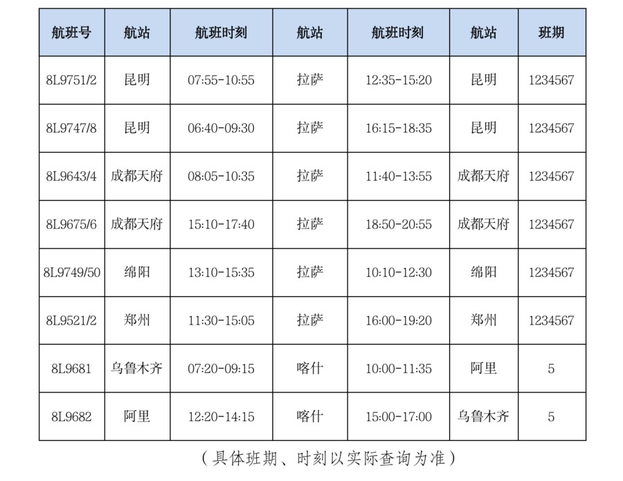 記者近日從(cong) 海航航空集團有限公司旗下的雲(yun) 南祥鵬航空有限責任公司(以下稱“祥鵬航空”)獲悉,祥鵬航空計劃執行拉薩—成都天府、拉薩—昆明、拉薩—綿陽、拉薩—鄭州、阿裏—喀什—烏(wu) 魯木齊等7條航線,為(wei) 暑運期間旅客進出藏搭建高效便捷的“空中橋梁”。